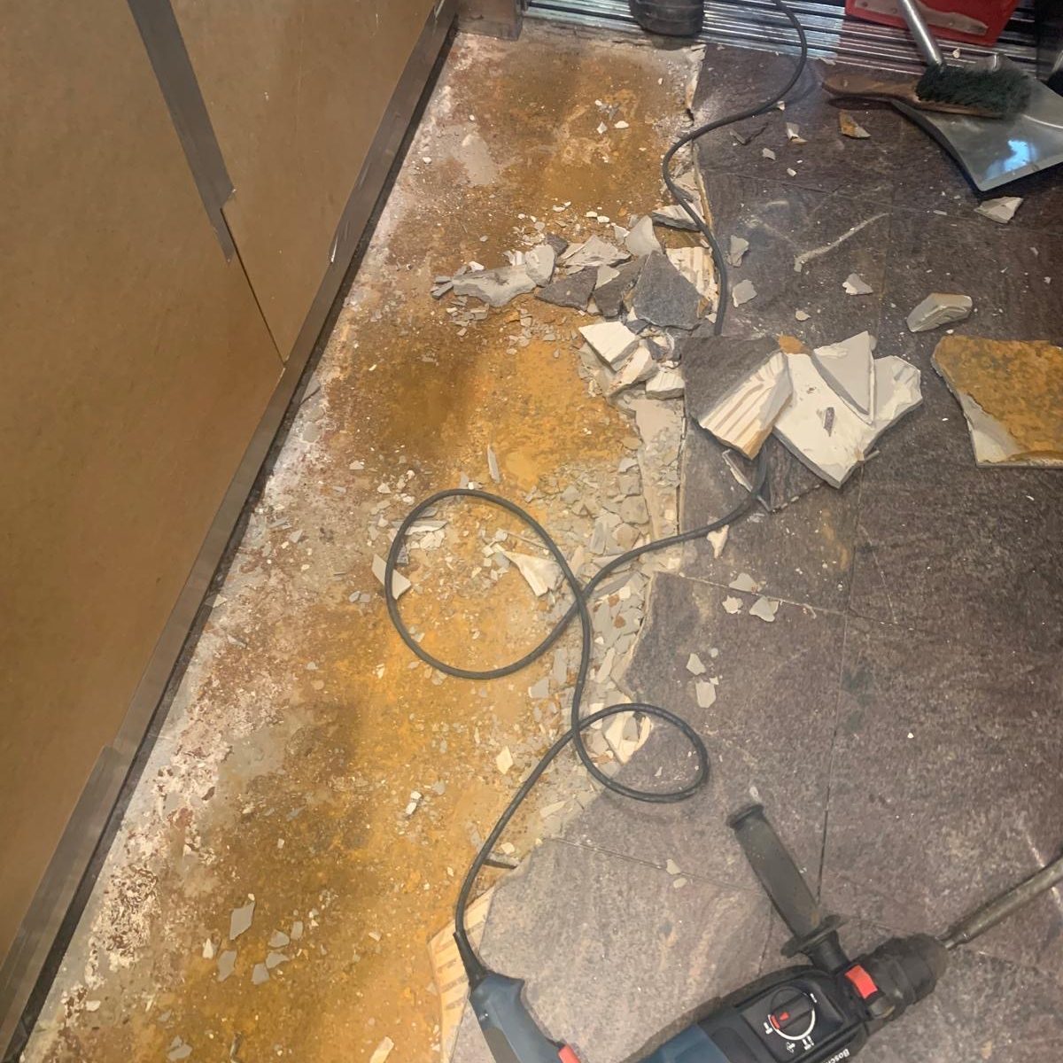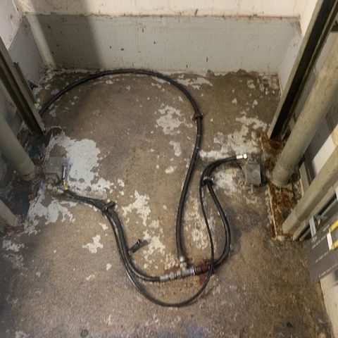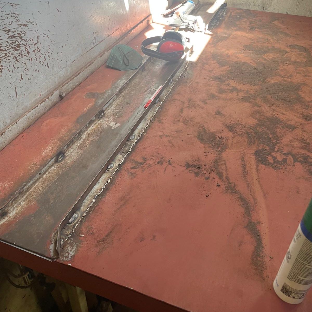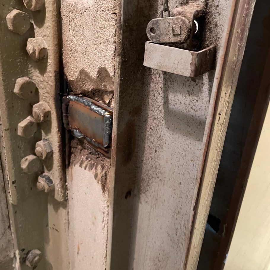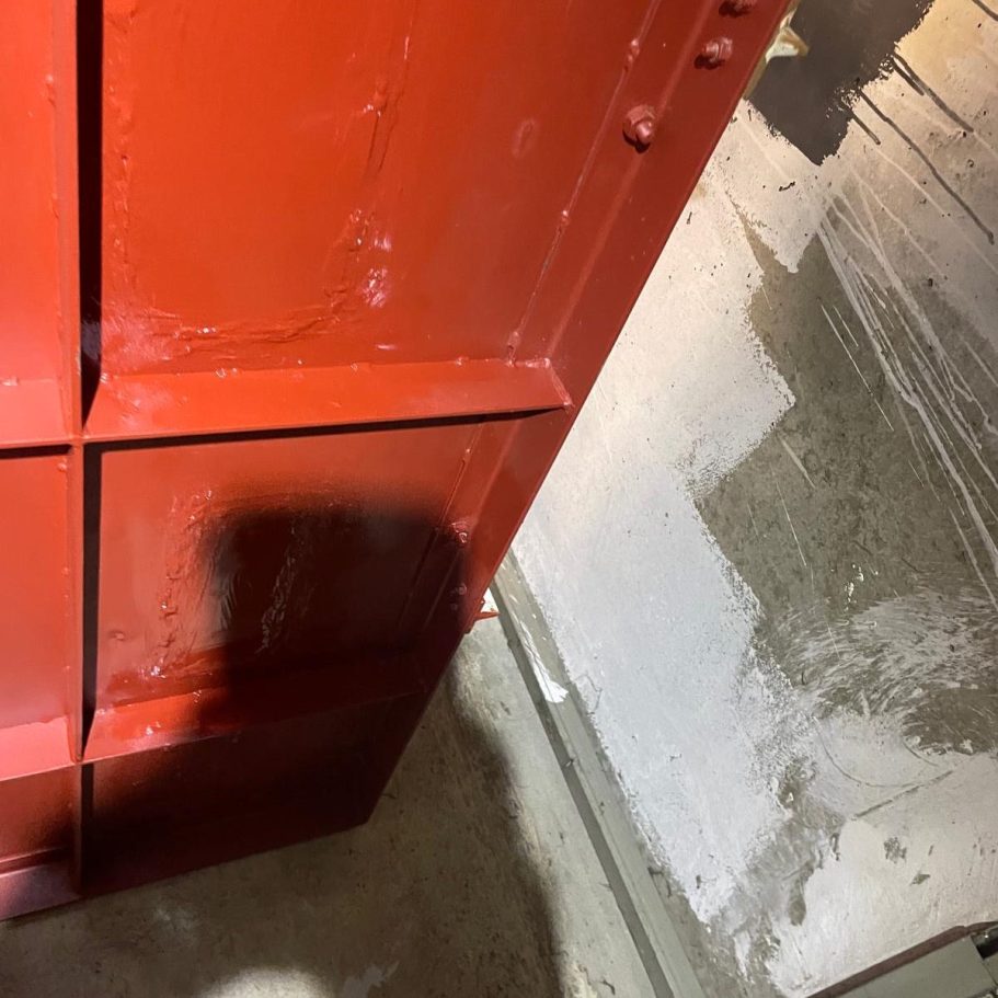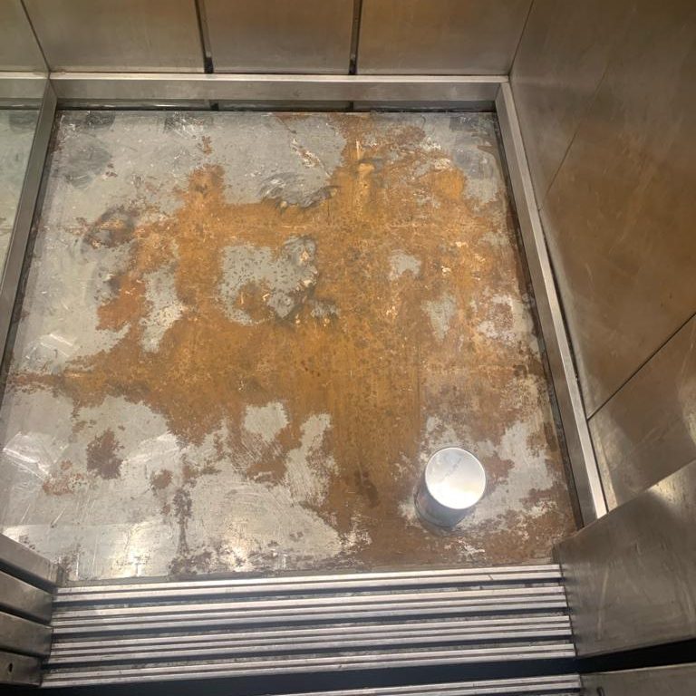 Durchgerosteter Boden eines Müllaufzuges, inklusive Ausschneiden des beschädigten Blechs, Einschweißen des neuen Bleches und einer Rostschutzbeschichtung