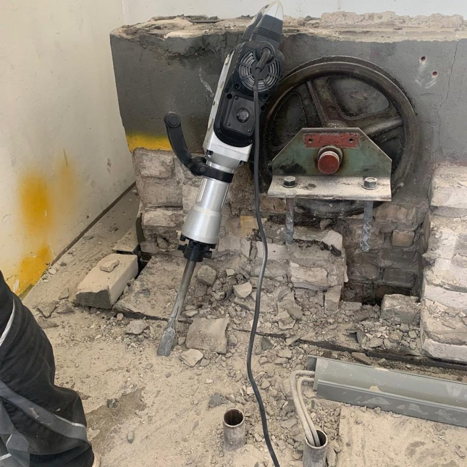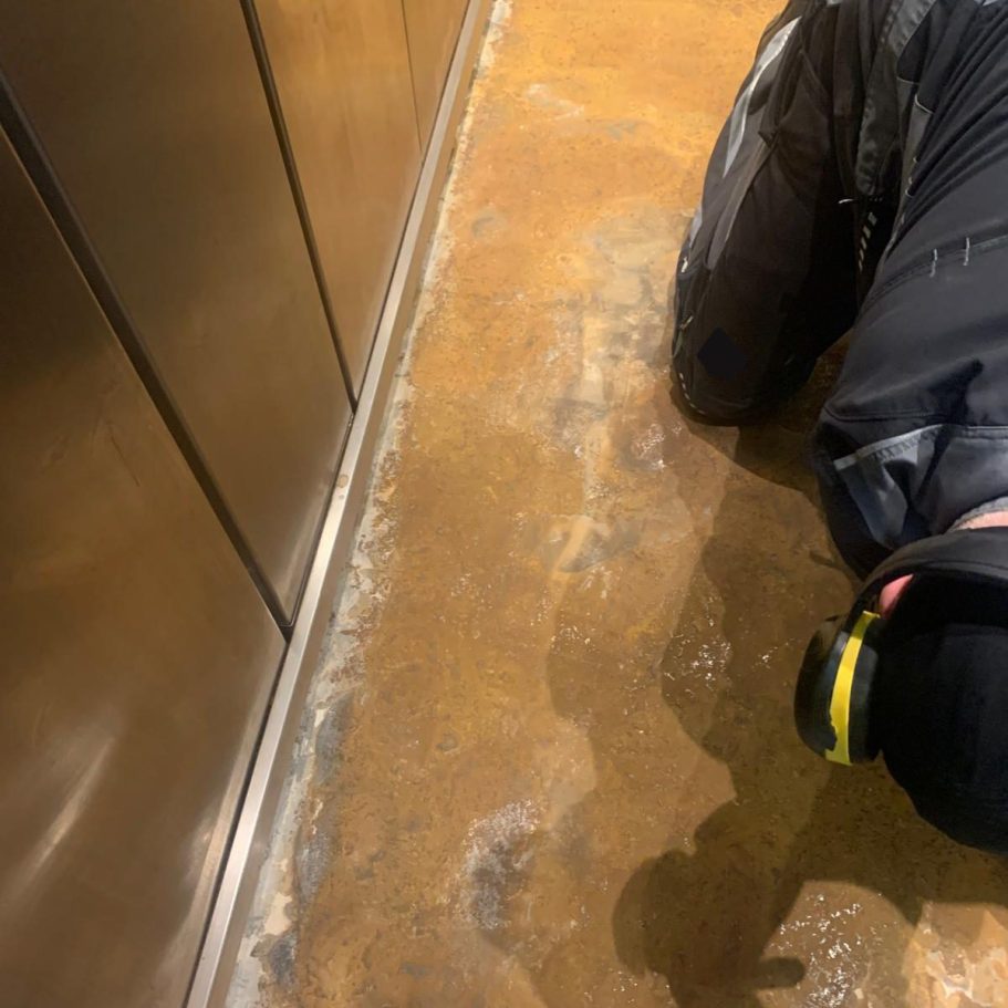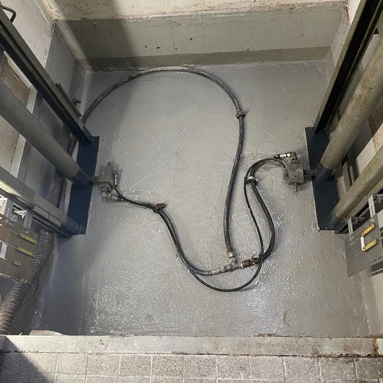 Wir bieten vielfältige Instandhaltungs- und Sanierungsleistungen für Aufzugsschächte und Maschinenräume an. Dazu gehören ölfeste und abriebfeste Bodenanstriche gemäß WHG §19 l, die Oberflächen dauerhaft vor Öl und Betriebsstoffen schützen und beständig sind. Verschmutzte Wände und Decken werden neu gestrichen, um ein helles, sauberes Arbeitsumfeld herzustellen. Stahlkonstruktionen entrosten wir fachgerecht und versiegeln diese mit Rostschutz, während beschädigte Betonkonstruktionen instandgesetzt werden. Bei Bedarf erneuern wir komplette Kabinenböden, inklusive Entfernung des Altbelags, Vorbereitung des Untergrundes und passgenauem Einbau des neuen Bodenbelages. Für Sicherheit sorgen wir durch die Montage von Absturzsicherungen nach DIN EN 81-20 für Sicherheit auf Ihrer Baustelle. Zusätzlich führen wir präzise Kernbohrungen mit Diamanttechnik sowie professionelle Schweißarbeiten an Stahlkonstruktionen für Sie durch.