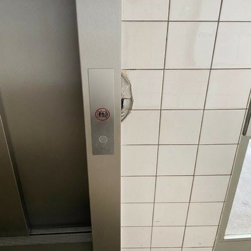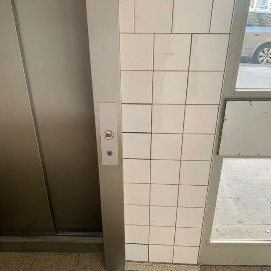 Bei der Aufzugsmodernisierung beschädigte Treppenhausfliesen wurden durch passende neue Fliesen ersetzt