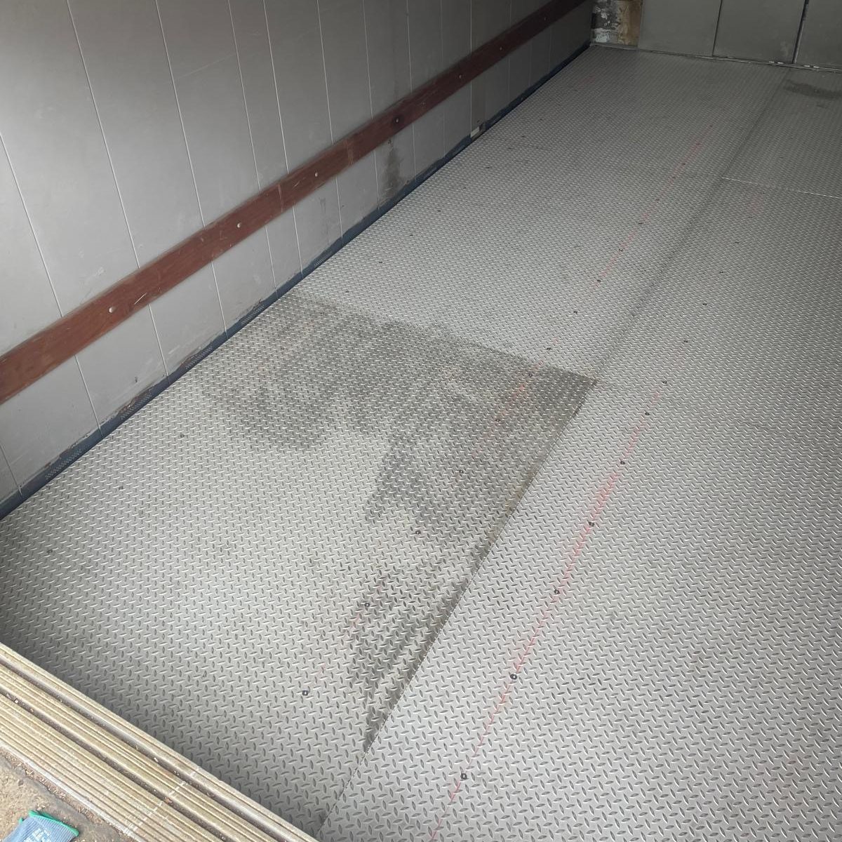 Alter Kabinenboden wurde entfernt und durch einen neuen Bodenbelag mit Spezialkleber fachgerecht eingebaut
