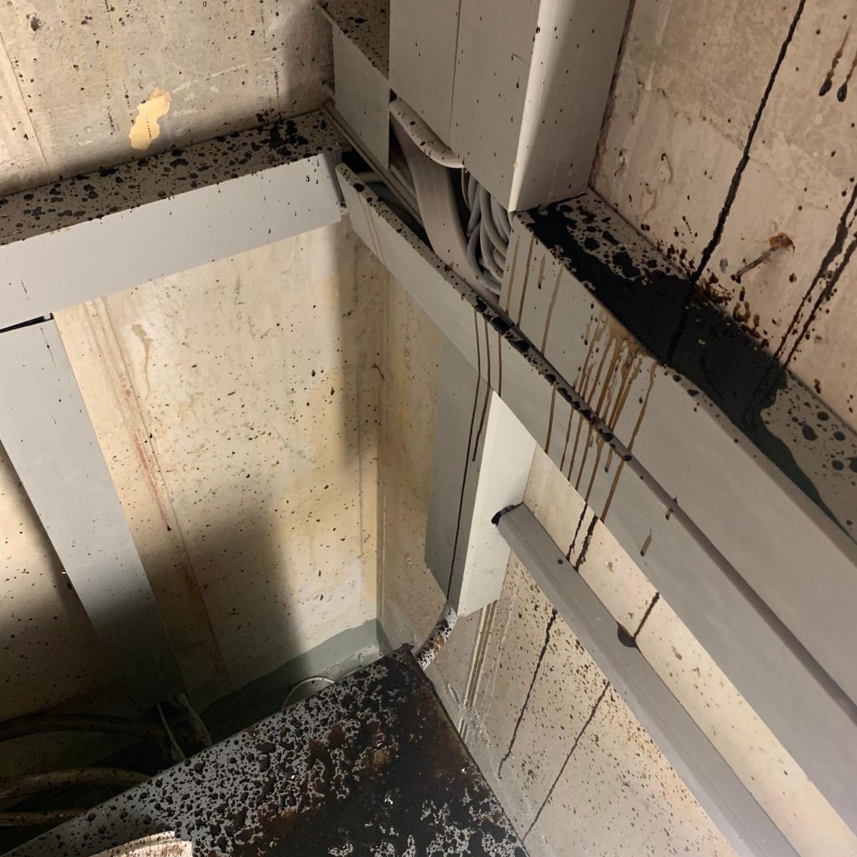 In einem Aufzugsschacht ausgelaufene Würzsauce